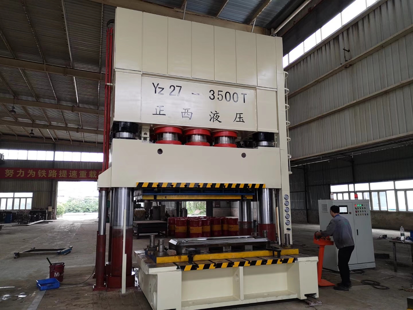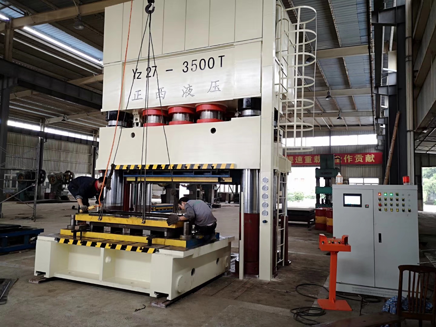 廣漢客戶的在我司訂購(gòu)的3500T四柱液壓機(jī)交貨啦,送至客戶工廠安裝調(diào)試。